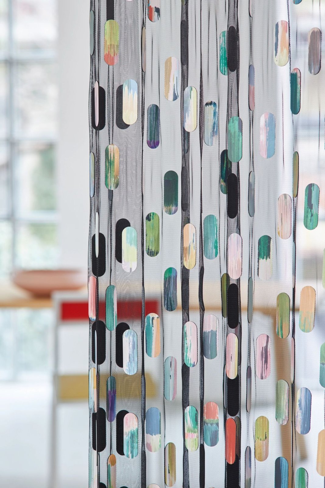 Изюминкой коллекции является жаккардовая ткань RUSH, где горизонтальные мазки кисти создают ощущение, пролетающих мимо цветных облаков. Такой эффект несомненно создаст акцент в комнате. Шесть оттенков охватывают весь спектр цветов, от мягких до более насыщенных. С другой стороны, коллекция выделяется и другим дизайном - ELECTRA - технически сложный текстиль выглядит особенно роскошным. Шестиугольные формы, частично вырезанные лазером из мягко драпирующейся плотной ткани, а затем покрытые фольгой, создают необычный трехмерный образ. Еще один привлекательный дизайн - модная легкая штора ELLA с пайетками формы суперэллипса, «пляшущими» на тюлевой основе. Благодаря градиенту на пайетках, тюль привнесет яркость в любое пространс