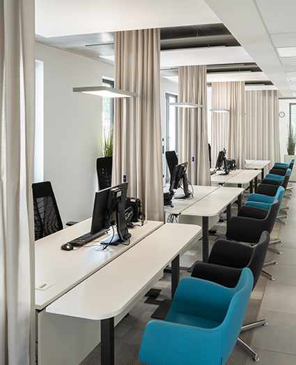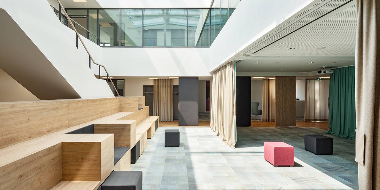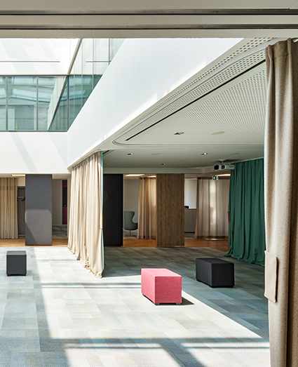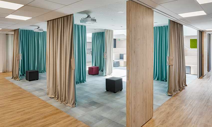 Благодаря швейцарскому текстилю Création Baumann компания FABRIC DECO открывает новые креативные возможности для офисов, отелей, ресторанного бизнеса, а также для школ и детских садов. На примере офиса немецкой компании энергетических услуг GGEW AG Création Baumann показывает, что безопасная и коллективная работа может происходить в одном пространстве. Полупрозрачные шторы структурируют помещение, создавая различные зоны и улучшая акустику в офисе за счет поглощения звука. Каков результат? Инновационная среда с большим пространством для концентрации и общения.