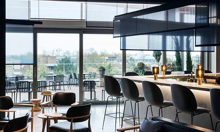 Другой интересный вариант для общественных мест - это инновационные рулонные шторы от итальянского производителя Mottura. Супер-прозрачные и тонкие (0,5 мм) защитные экраны из ПВХ - качественное и безопасное решение для банков, офисов, фитнес-залов, отелей или ресторанов, когда так важно соблюдать социальную дистанцию.