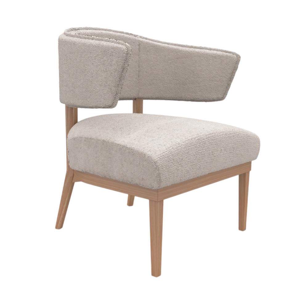 Изогнутая спинка с мягким объёмом, фактурное букле и каркас из массива бука — в этом кресле всё продумано до деталей. Лаконичная форма делает его универсальным: одинаково уместно в спальне, гостиной, детской или переговорной.