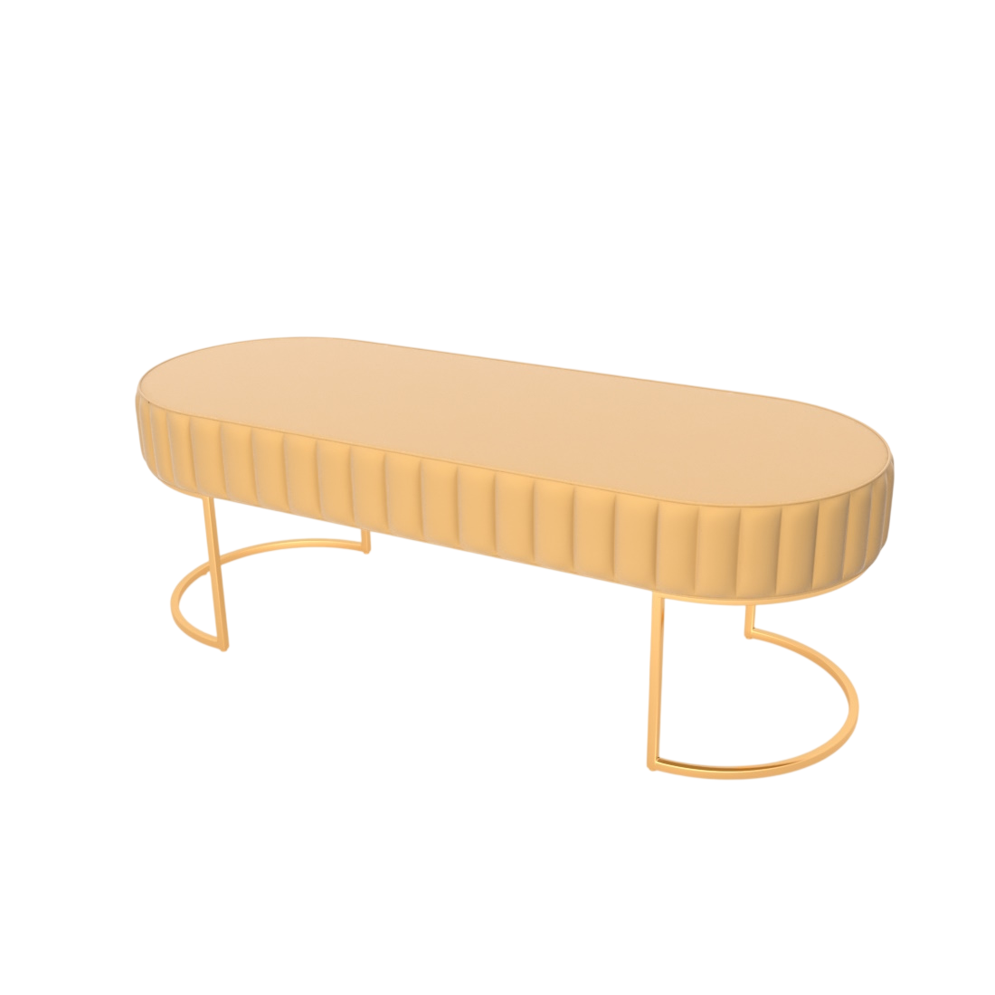 Форма капсулы, рельефная строчка по периметру, ножки-дуги из металла — Пьемонте сочетает итальянскую элегантность с современным характером. Мягкий микровелюр и чёткий геометрический силуэт делают её одинаково уместной у изножья кровати, в прихожей или лобби отеля.