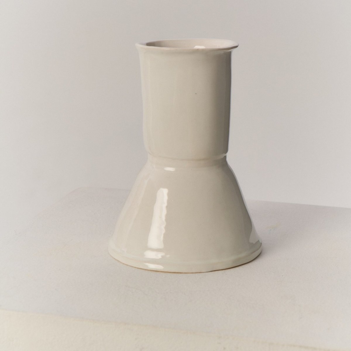 Белая ваза "Бутон" из глины ручной лепки, белая глазурь снаружи и внутри.