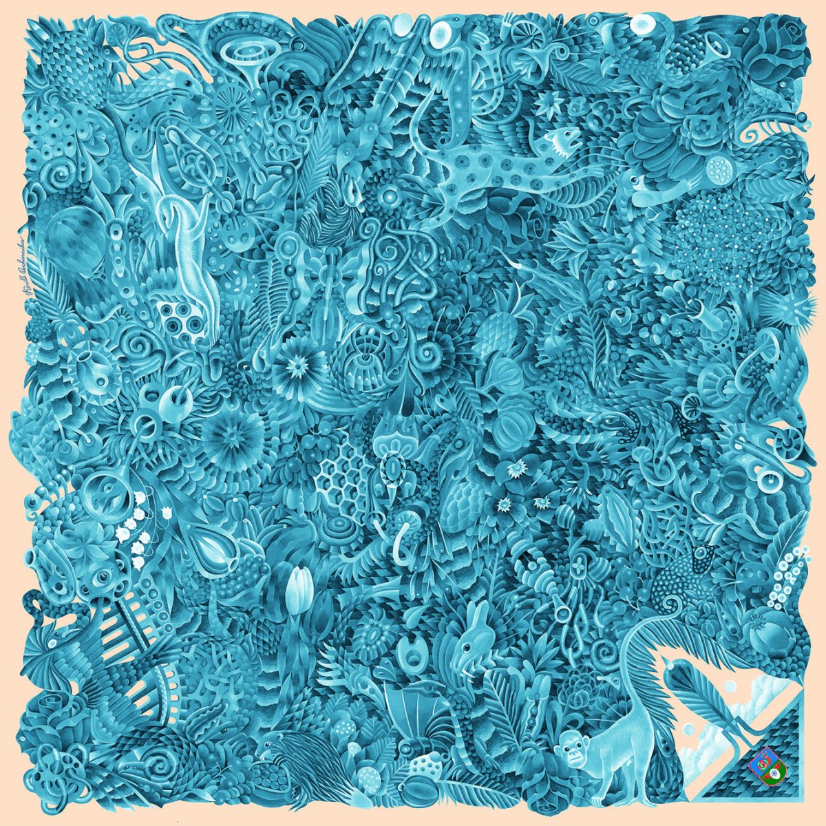 Платок ручной работы из кашемира "Ароматика" новинка от бренда Kirill Ovchinnikov. Размер: 135x135 см. Ручная обработка края.