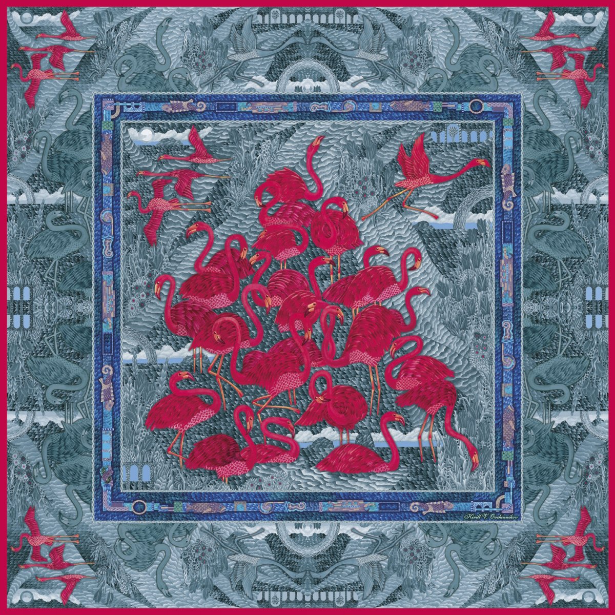 Платок ручной работы из кашемира "Ледяной фламинго" от бренда Kirill Ovchinnikov. Размер: 135x135 см. Ручная обработка края.