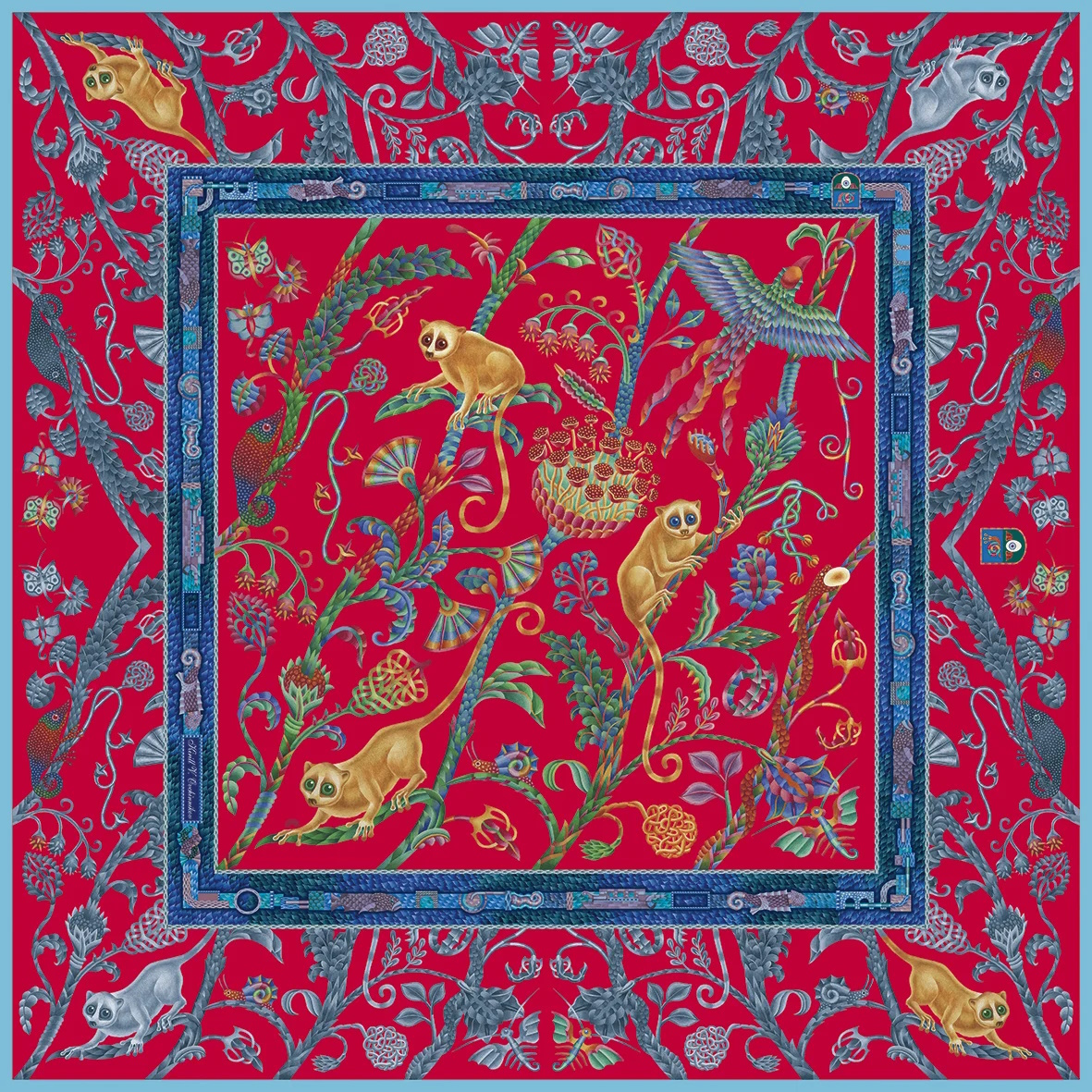 Платок ручной работы из кашемира "Ля-Муррия в красном" новинка от бренда Kirill Ovchinnikov. Размер: 135x135 см. Ручная обработка края.