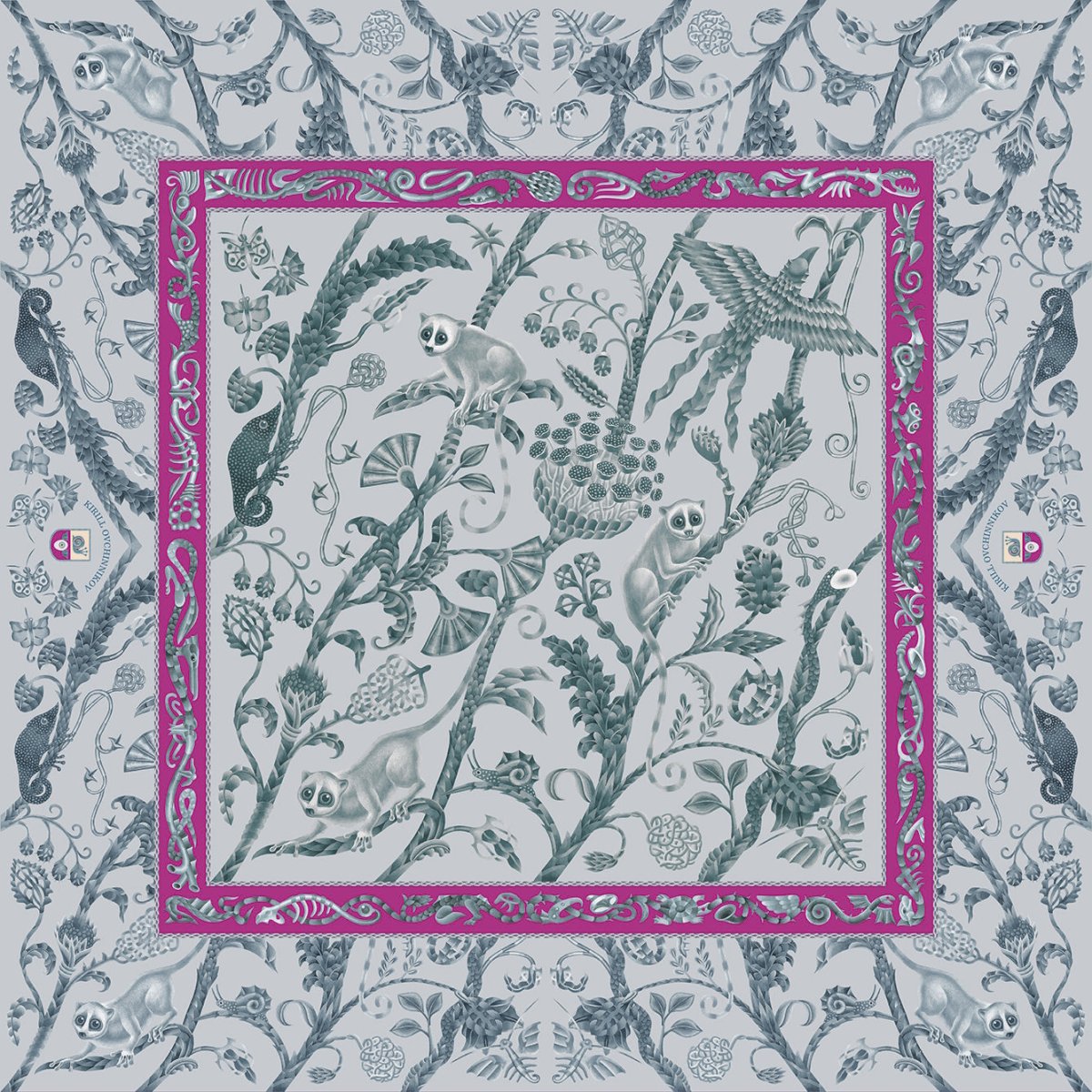 Платок ручной работы из кашемира "Ля-Муррия в сером" новинка от бренда Kirill Ovchinnikov. Размер: 135x135 см. Ручная обработка края.
